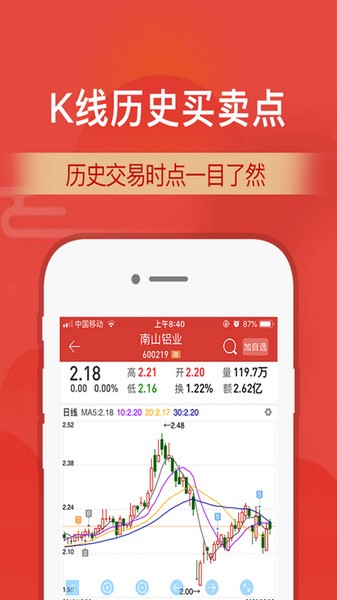 符合手机操作特性,手指上下左右操作为滚屏或翻页,在K线图下是上下操作是放大缩小功能