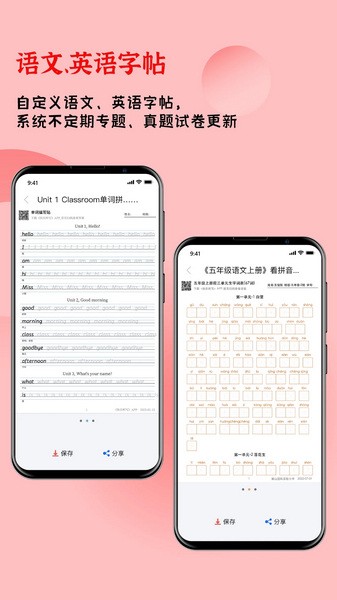 ● 5. 语文、英语字帖。