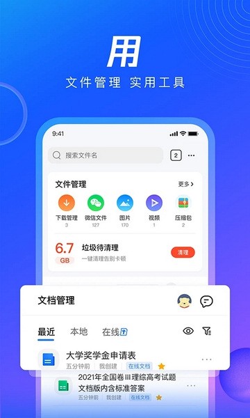 【文件管理】便捷管理手机文件,办公文档、学习资料一站式快速处理。视频处理、文档格式转化、拍照扫描、PDF工具、解压/压缩工具、空间清理等实用工具一应俱全