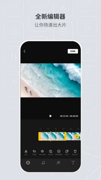 · 你还可以体验编辑器中丰富的视频模板,快速分享精彩瞬