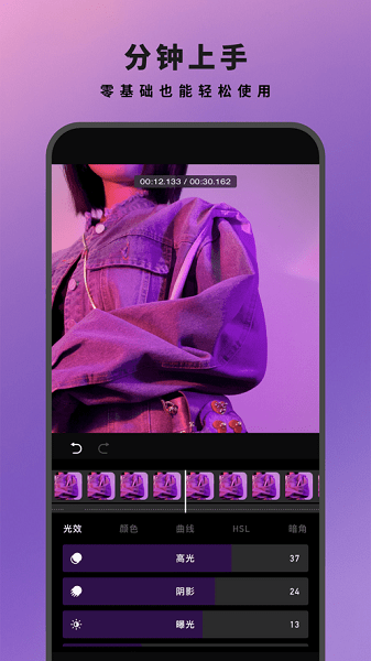 2、编辑模式支持HSL,色温,高光,阴影等等高级调整