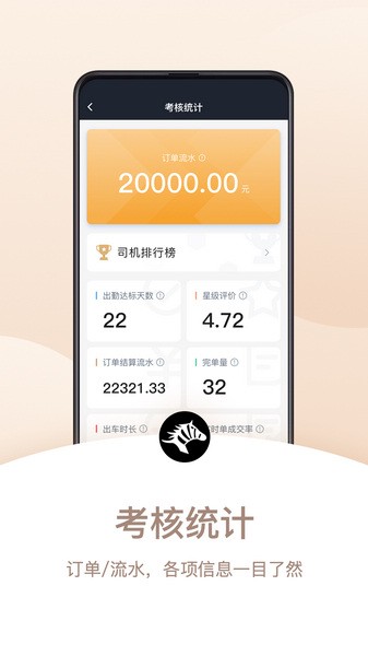 3、点击查看考核统计数据,了解出车时长以及接单结算流水等