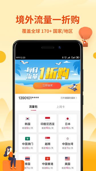 拥有多国境外流量包,做到哪里旅行都能用;