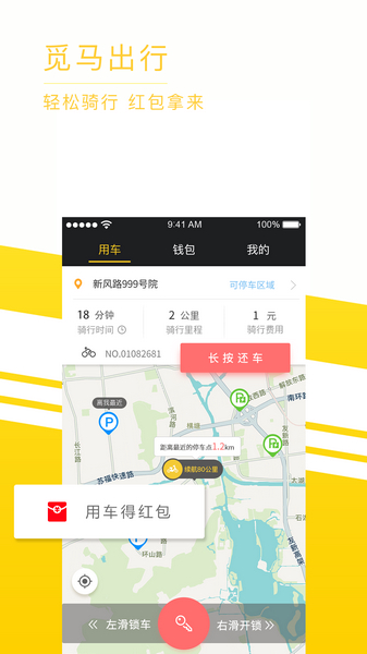 1、觅马出行app打破传统车业按天计费和在门店取还车的运营模式,开启“随时、随地、随借、随还”的流动式电动车共享概念;