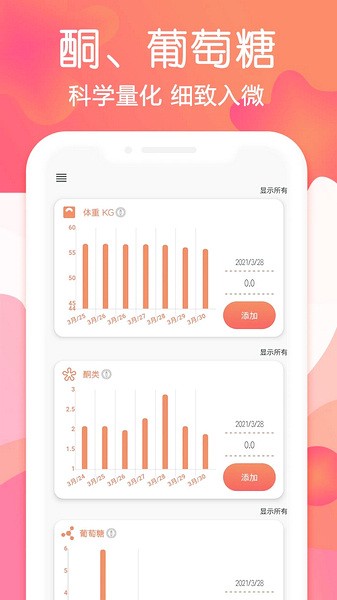 3、个人的饮食的管理进度为您用图表的形式呈现。