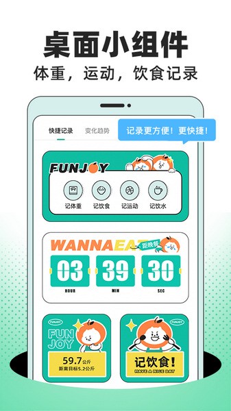 饭橘食谱提醒、快捷记录、数据变化趋势等精美小组件,配上大橘子的超萌模样,独一无二的桌面设置,你还没心动吗?