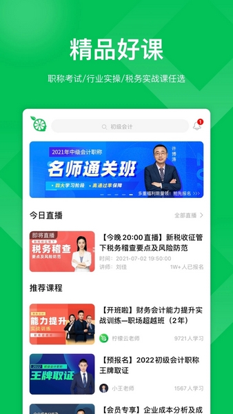 柠檬会计学院是一款主打会计职业学习考试的软件,如果想要提升自己会计职业考试的通过率,那么不如使用这款软件进行学习吧!其汇集了海量优质课程资源,且无论是零基础学做账实操,还是学习纳税申报、汇算清缴、税务筹划等应有尽有,满足不同用户的使用需求!更有超多历年真题、练习题助你查漏补缺,搭配考前押题服务,进一步提升通过率!凭借独特而创新的教学模式,柠檬云课堂会计学院包括了诸多优质的在线支付购买课程,为学员提供了全面的学习资源,从而实现了提升会计职业考试通过率的目标。无论您是想随时学习实操课,还是寻求专业的刷题训练,柠檬会计学院都能满足您的需求,并且多样化的测试您对知识点的掌握能力,让您可以更为精准地找到适合自己的课程。柠檬云课堂高效的刷题模式更是让学习变得更为轻松和高效,轻松提高成绩。