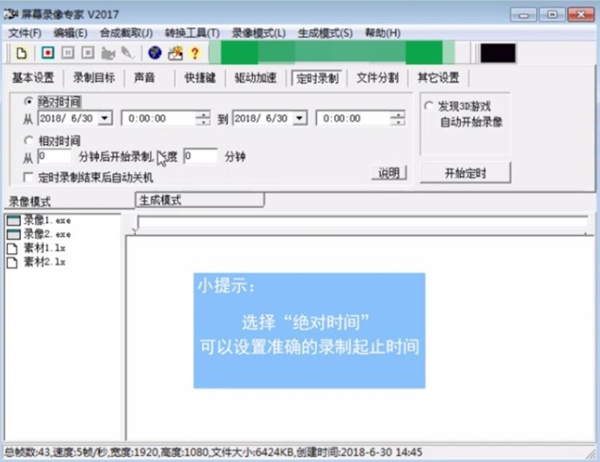 2、屏幕录像专家支持长时间录像并且保证声音同步。在硬盘空间足够的情况下,可以进行不限时间录象。