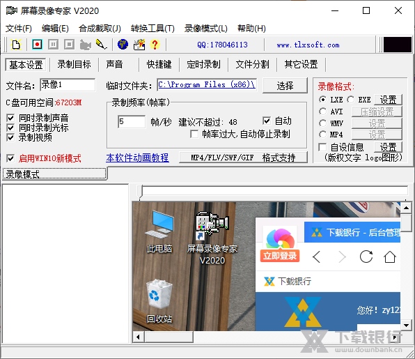 3、独创LXE/EXE格式支持原画无损录制(制作软件操作教程时),支持超高分辨率,文件小