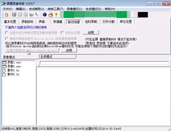 4、选中下方“使用内核驱动技术实现更快速录屏”以达到更好的加速效果。