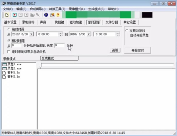 1、支持长时间录像并且保证声音同步。(V3 V3.5 V5 V5.5 V6等以前的旧版本声音同步有问题,请使用最新版)。在硬盘空间足够的情况下,可以进行不限时间录象(只有最新版有此功能)。支持WIN7/WIN8声音内录功能(录电脑播放的声音)。使用EXE/LXE/AVI格式录像时支持意外断电修复。