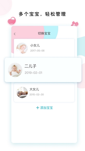 5、含有多个宝宝管理服务,用户可以根据自己的需求,自由添加宝宝;