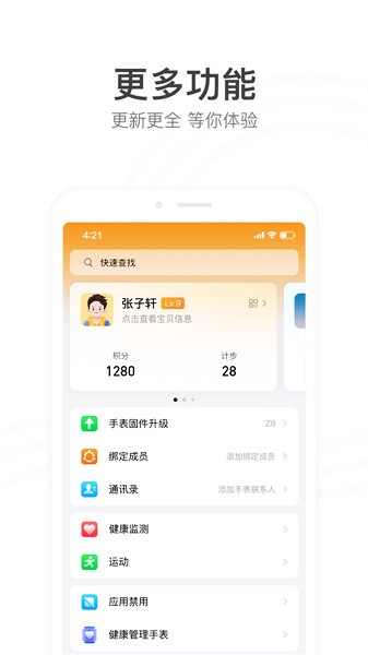 方便的短信功能,实时接收。预设大量精品关爱短信,帮您更好的表达舔犊之情。