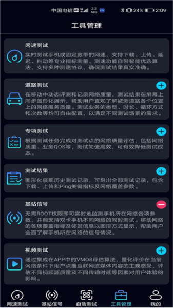 8、一共有6款工具可以使用,每个功能都很实用,对于普通用户来说,用用网速测试和视频测试就够了。