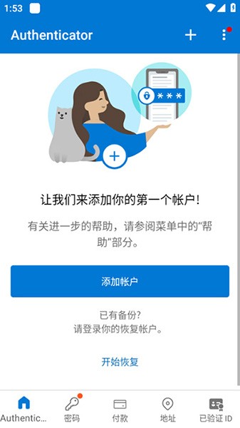 在Authenticator应用的“帐户”屏幕中,点击要恢复的帐户,打开帐户的全屏视图。