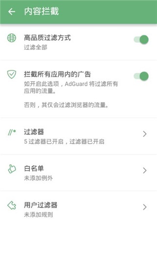 应用管理 工具会帮助您定制自己的广告过滤规则。毕竟这是您的设备,您有权决定要过滤什么或不要过滤什么。丰富的设置 — 从基本到“专业” — 以及能够帮助您自定义过滤的 应用管理 工具。