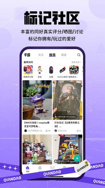 1、千岛是一款潮玩社区平台,平台拥有超多兴趣品类,可以很好的满足不同用户的喜好。