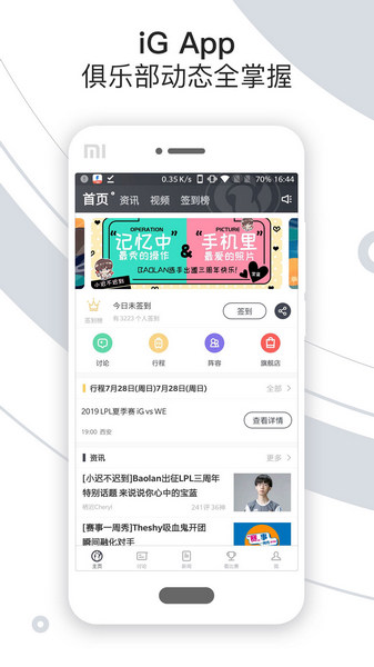 哈喽,iG有专属的app啦!这里是咱们的家,你可以尽情发表你对iG的期待与看法,还能通过语音问答与队员一起互动,参与活动迎取队伍专属福利。