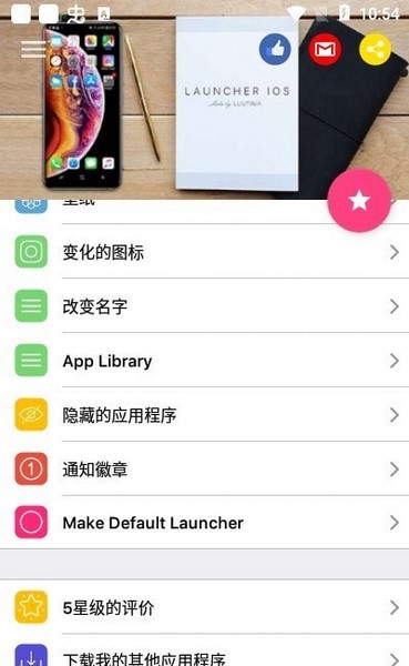 3、包含了各种各样桌面实用工具,将自身的安卓手机上变成iOS系统软件的仿生技术桌面。