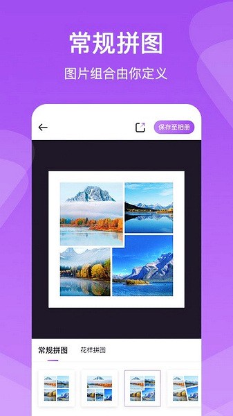 2.各种花式拼图,长图片的无缝拼接,常规拼图等都可以快速方便地选择。