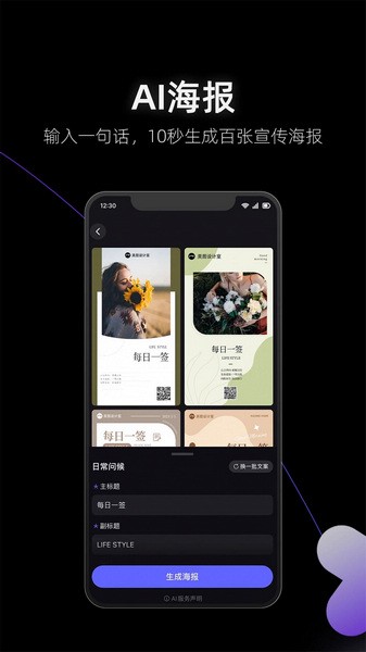 想要制作个性化的杂志封面或逼真的电影海报吗?不用烦恼,小编向您推荐一款绝佳的工具——美图设计室!原名海报工厂,由美图秀秀原班人马亲力打造,是一款杂志封面照片制作神器。操作简单,拥有众多制作特效,让你轻松制作出各种惊艳效果,绝对是目前手机上最优秀的制作软件!无论您是想为学校社团的招新活动设计海报,还是为您的食品业务寻找令人印象深刻的宣传材料,美图设计室所提供的轻松而富有创意的方式都能满足您的需求,随时制作多种类型的海报。app的特色在于它的多样性和创意性。用户可以在应用中找到杂志封面、电影海报、美食菜单、旅行日志等最新潮的海报元素,无需繁琐的设计步骤,即可快速打造出引人入胜的视觉作品。内置的美图优质特效更是锦上添花,为您的海报增色不少,使其更具视觉冲击力。