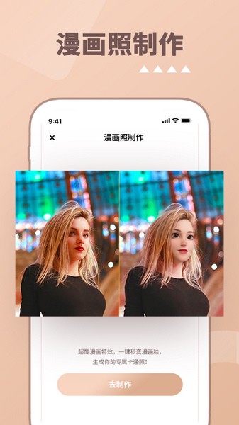 增添AI彩漫、AI油画、AI绘画、AI素描类功能,实现卡通脸制作、漫画脸制作、铅笔素描照。
