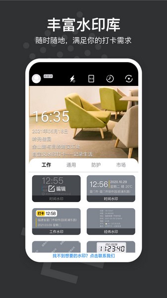 自定义水印相机手机版本最新版是一款方便好用的手机相机软件。这款软件支持用户自定义编辑水印内容,有不同的水印模板可供用户使用,针对不同的场景可以选用不同的水印。在设置好水印后用户用软件拍摄相片可自动为相片添加水印,清晰无误,还可转发分享。此外,软件拍摄时可以选用不同的滤镜来调整视觉效果。