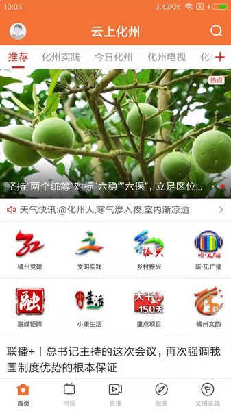 云上化州app是一款以化州本地新闻资讯为主,各项便民服务为辅的实用生活平台,专为化州当地居民而打造,致力于为每一位市民提供方便、快捷、高效、实用的生活服务。软件内有海量的新闻资讯和各项党建政务信息,用户在这里还能够看电视、听广播。这里还有各种电视新闻、热播剧等,非常好看!用户通过这款软件能够随时掌握本地新鲜事,方便的天气预报、办事大厅,让你在这里过得舒心!