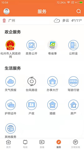 服务:天气预报、办事大厅、政务公开、驾驶行驶、护照证件、户政、婚姻、房产、公积金、其他服务