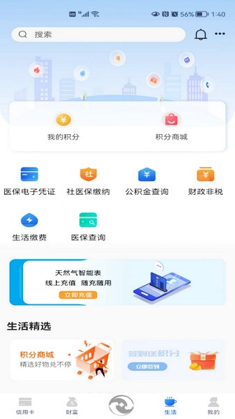 2、生活服务:网点查询、商户联盟、社区商城、便民缴费、市民卡服务、三方应用;