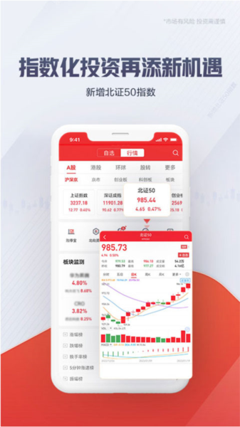 提供及时清晰的实时行情,强大的图表分析功能(走势图、日/周/月等K线图)及自选股个性化管理功能,可以24小时提供深沪两市A、B股、权证及基金、债券各类证券品种实时行情、个股基本财务指标、公告信息等查询;
