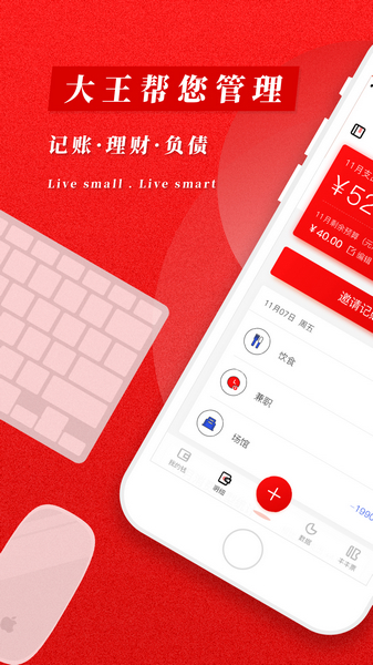 大王管钱,一键式智能资产管理App软件。大王管钱基于用户行为研究,采用先进的资产分析法,首创符合现代消费习惯的独特约束型记账模式。