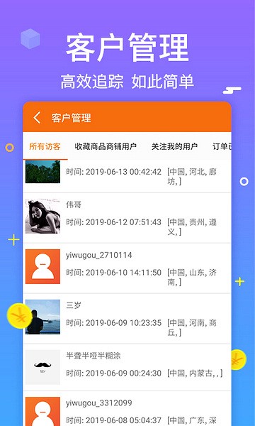 无论身处何地,义乌购商户版都能满足商家的移动办公需求。随时随地掌握商品、询盘、订单、物流等信息,让商家在快节奏的商业世界中游刃有余。商铺经营数据分析系统为商户提供了量身定制的数据分析,让经营决策更加精准。同时,简单而有效的客户追踪功能,使商家能够抓住每一个成交机会,实现随时随地、轻松高效的生意经营。