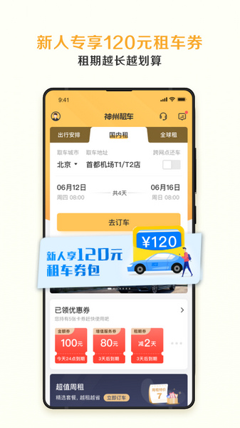 国庆出行首选神州,新人专享120元优惠券等你来拿!