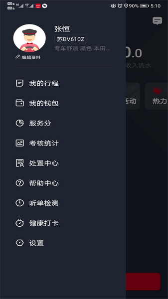 1.同样是在携华出行司机端app的个人中心页面中,点击右上方的齿轮图标。