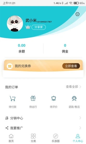 6、在手机中可以直观查看旅游推广佣金金额,方便申请提现佣金;