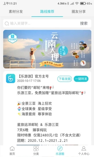 4、提供了海量旅游服务推广素材,一键操作就能转发到朋友圈中;