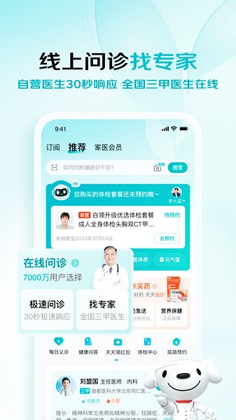 全科室医生团7×24小时随时问诊,一人买全家用,30天免费体验加速领红包