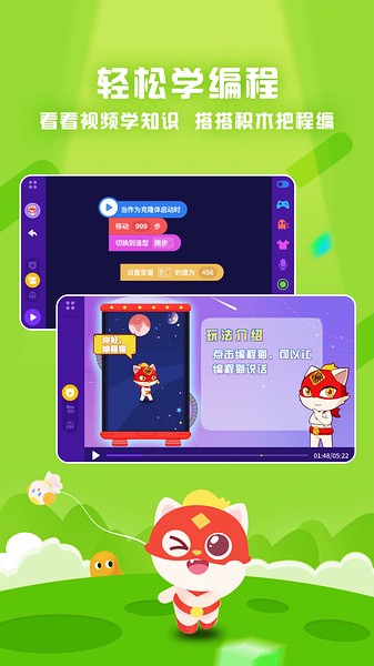 探月少儿编程app是编程猫推出的一款专为8-12岁孩子设计的编程学习软件,它把编程知识和数学、科学、历史等学科结合在一起,用生动有趣的卡通动画呈现,帮助孩子们轻松理解和学习。这款app的功能挺强大的,比如随时随地用手机或平板就能学编程,还有专业老师辅导,再也不用担心学习孤单了。最让我觉得有意思的是它的剧情化课堂,把知识点融入原创动漫里,既有趣又能学到东西。