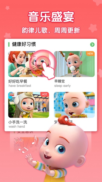习惯养成要趁早!这里有关习惯养成的儿歌多又好。宝宝听儿歌《小手洗一洗》,养成卫生好习惯;看动画《吃饭不挑食》,养成健康饮食习惯。
