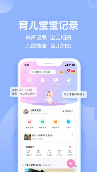 1、喂养记录&孕期档案全新升级,卡片式操作清晰又便捷
