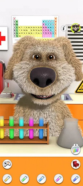 会说话的狗狗本是一款有着大量互动玩法的游戏,玩家们不仅可以自由和狗狗进行互动,还能够一起玩耍并进入实验室开始做化学试验。通过混合不同的试剂药品,玩家们将解锁各种神奇的反应。此外,大家还可以在这里戳一下或拍拍狗狗的脸、肚子,从而获得不一样的反应。游戏休闲易上手的玩法特点绝对能够为大家带来一段美好的时光。