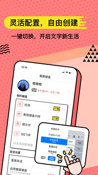 套路键盘客户端是一款十分有趣的手机输入法软件,软件收录了许多经典语录,用户可以寻找自己喜欢的语录并收藏,下一次就能够快捷使用这些语录来聊天了,软件给用户带来了极大的便利。软件还为用户提供自动发送模式,可提前编辑好文案内容来定时发送,可以与语录功能搭配使用,快速生成适用于不同场景的文案,操作简单又方便。