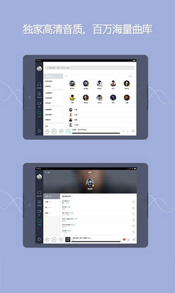 2.【全国最大的正版高品质乐库】:收录百万量级的正版高品质音乐,让你畅享听觉盛宴,曲库最全,告别缺歌烦恼!。
