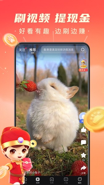 百度极速版赚钱是一款精简极速启动版本的百度搜索浏览器。这款软件在保留原版百度APP的核心功能的前提下对界面的各项功能进行了精简,对比原版安装包的占用要更少,且因减少了冗杂的多余功能而对手机设备的配置需求大幅度降低,让所有的手机用户都能够流畅地使用这款软件来上网浏览信息。软件内置百度搜索引擎,为用户精准提供各类搜索结果,并且还会启用大数据分析用户的搜索习惯并推测用户的喜好,再根据这个结果为用户推送相关的资讯新闻。每天用户打开软件就可以在首页看到推送的热点,用户还可以进一步设置本地频道来方便接收本地的新闻资讯。多栏目频道满足用户的不同需求,在强大的搜索引擎的支持下快速响应用户的需求,并且实时更新最新的资源。