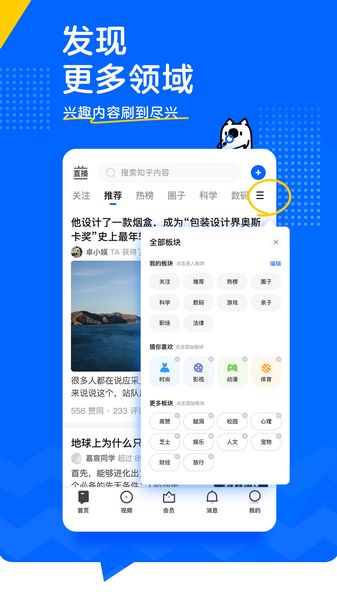 如果你喜欢追热点讨论或者涨知识,知乎也是一个不容错过的地方。无论是热门影评、社会事件还是游戏攻略、人生百态,都能在这里找到共鸣。总之,知乎不仅是个问答平台,更是一个充满干货和惊喜的知识分享社区。如果你还没下载,赶紧试试吧!