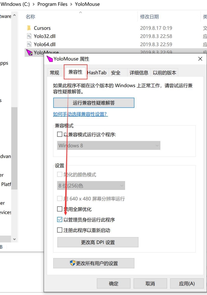 进入目录,右键程序,“属性”→“兼容性”→勾选“以管理员身份运行此程序”→确定