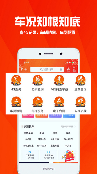 华夏二手车网app是一款专注于二手汽车交易的手机购车买车平台软件。在这款软件中用户可以通过搜索查找的方式找到许多品牌的二手汽车,可以查看每辆汽车的使用时间、车辆状况、价格、售卖地点等重要信息, 这些信息都会影响用户购车的想法。平台会为每位用户提供优质的购车咨询服务,用户如果在使用软件的过程中遇到困难疑问可以选择向平台客服询问,帮助解决问题。如果对某辆在售汽车存有疑问的话可以通过平台与卖家进行沟通交流。用户可以关注某类型的汽车,一旦有符合条件的车辆出售的话平台会第一时间通知用户参与竞价拍卖,部分热门车的货源是十分紧缺的。所有在售的汽车都会有平台组建的专业团队上门进行评估,检验实际车辆状况是否符合卖家描述,所需要的证件、记录等也会一一核对,做到让所有信息都是真实,且所有流程都公开透明,保障买卖双方的权益