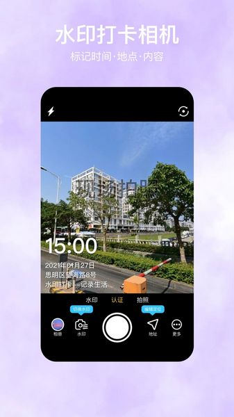 【水印相机】选好水印、一键拍照,水印照片自动生成;水印相机样式丰富多彩,让你的照片更时尚,朋友圈更出彩;爱美爱自拍就用水印相机专业版!一键获取当前时间地点作为水印,帮助用户拍照打卡!
