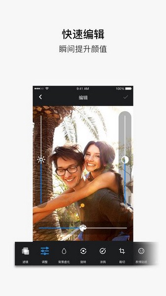 1、提供各种编辑器,如贴图,涂鸦,文本添加等,使图片变得有趣有趣。
